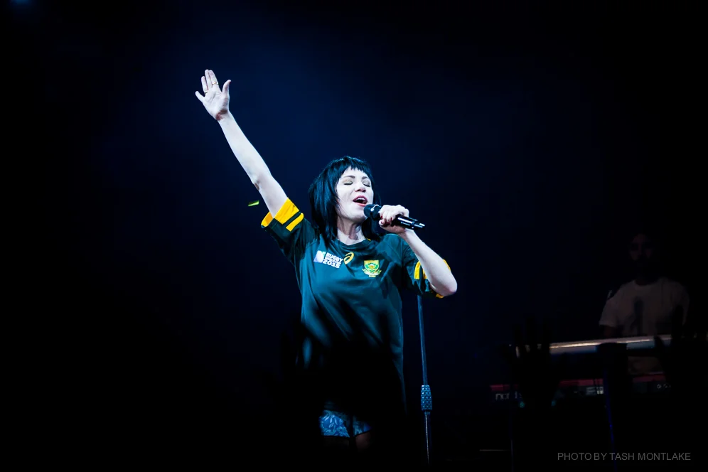Carly was also really impressive live. No costumes changes or obnoxious stage presence. She was there to sing songs for her fans. I have so much respect for her now. She can sing. The best moment was seeing her run on stage with the Springbok jersey we bought her. Anton's face was priceless (I caught it on film, see below)
